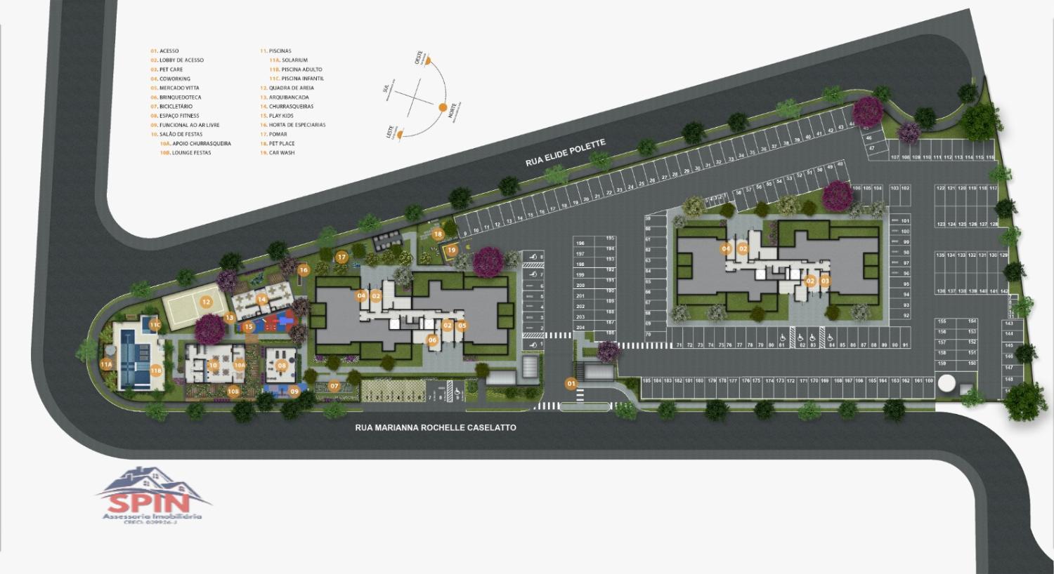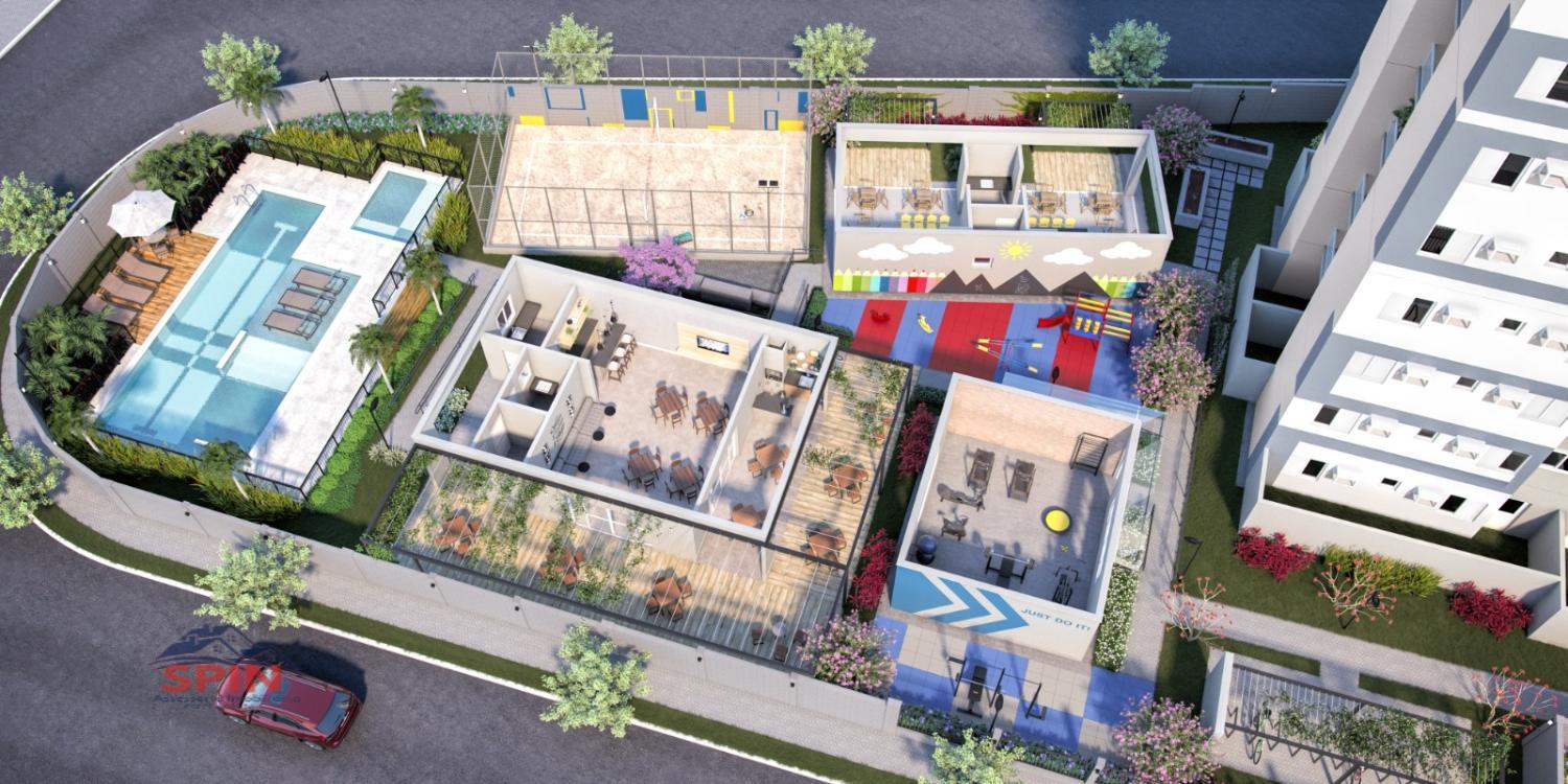 Duas torres de 12 andares com elevadores. Área de lazer completa, conta com: