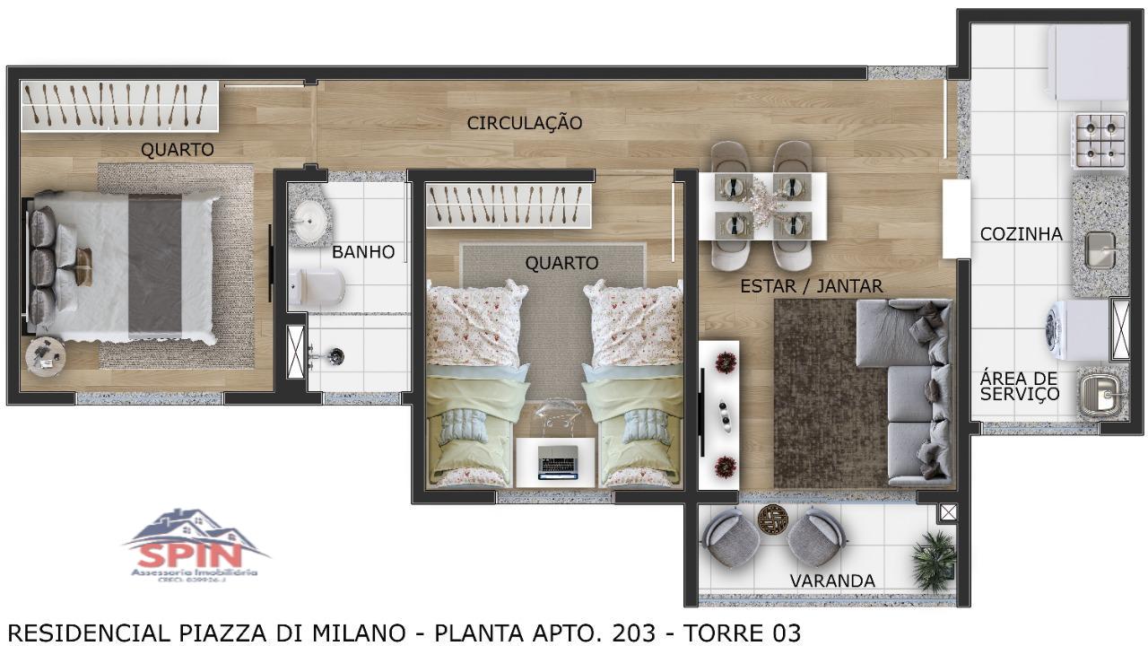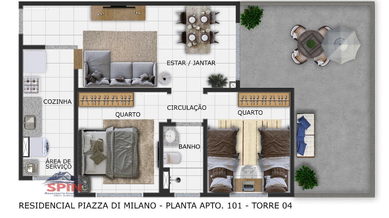 Apartamentos com 1 a 2 dormitórios, com ou sem varanda e ainda com a opção Giardino, com amplo área externa privativa.